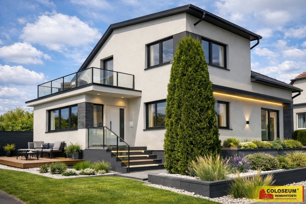 Dům je celý podsklepený, nabízí garáž i venkovní kryté parkovací stání a je naprosto ideální pro rodinné bydlení. Zastavěná plocha domu činí 106 m2.