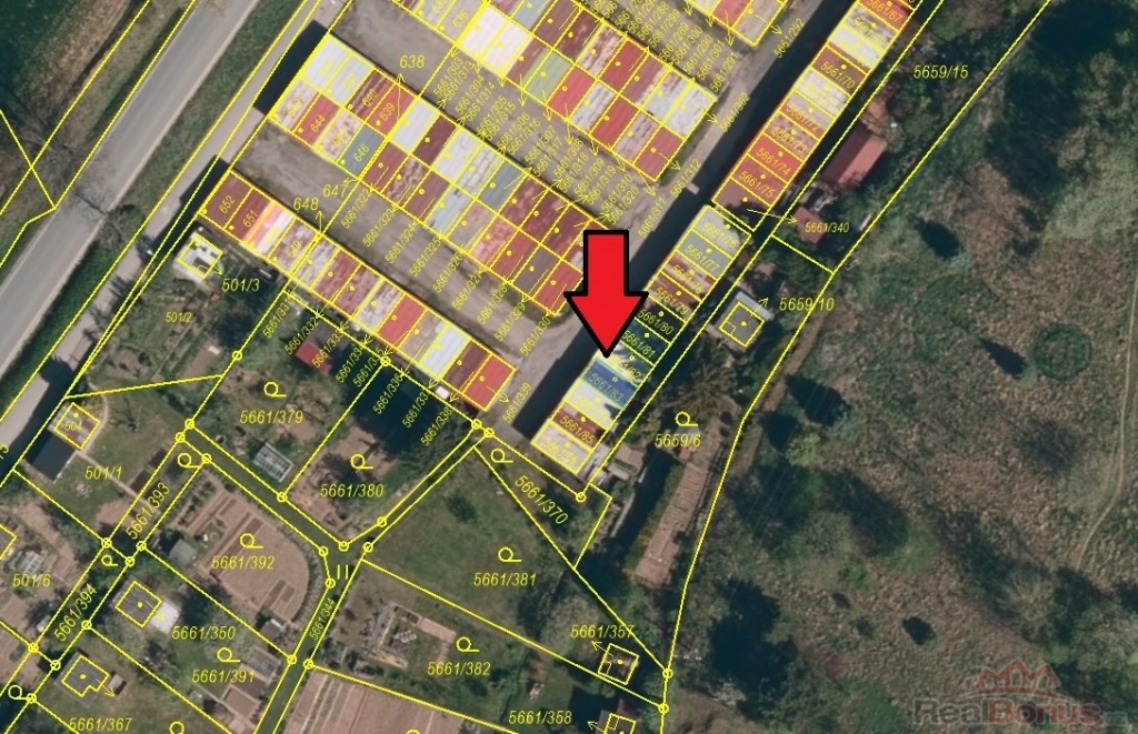 Garáž č.e. 738 stojí na pozemku parc. č. 5661/83 (parcela ve vlastnictví jiného vlastníka ? Statutárního města Jihlava, list vlastnictví 10001)