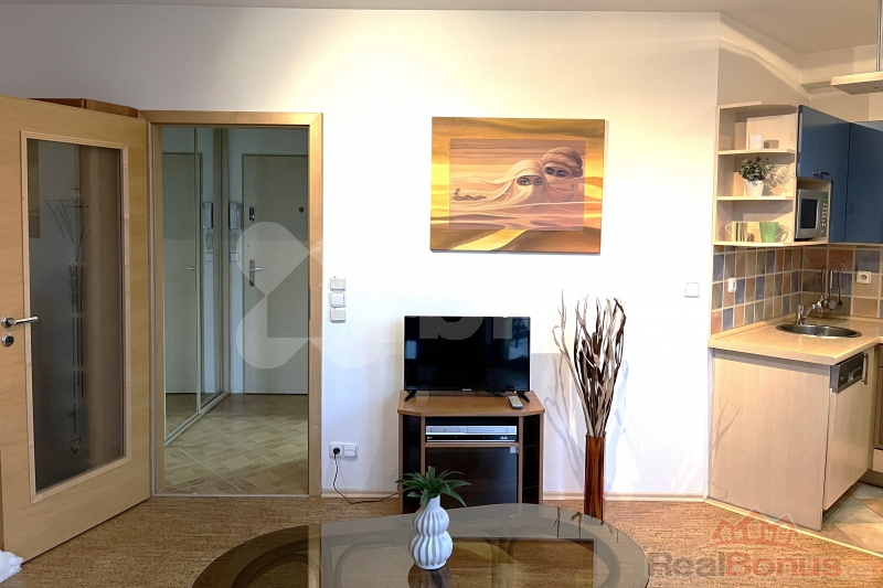 Ve výhradním zastoupení majitele nabízíme k pronájmu prakticky zařízený byt 1+kk, o velikosti 31 m2, s balkónem 4,5 m2, v 9. NP novostavby z r. 2006 s výtahem, nacházející se v ulici U Kamýku, na okraji menšího panelového sídliště, v oblíbené lokalitě Prahy 4 - Kamýku, s velmi dobrou dostupností do centra Prahy.