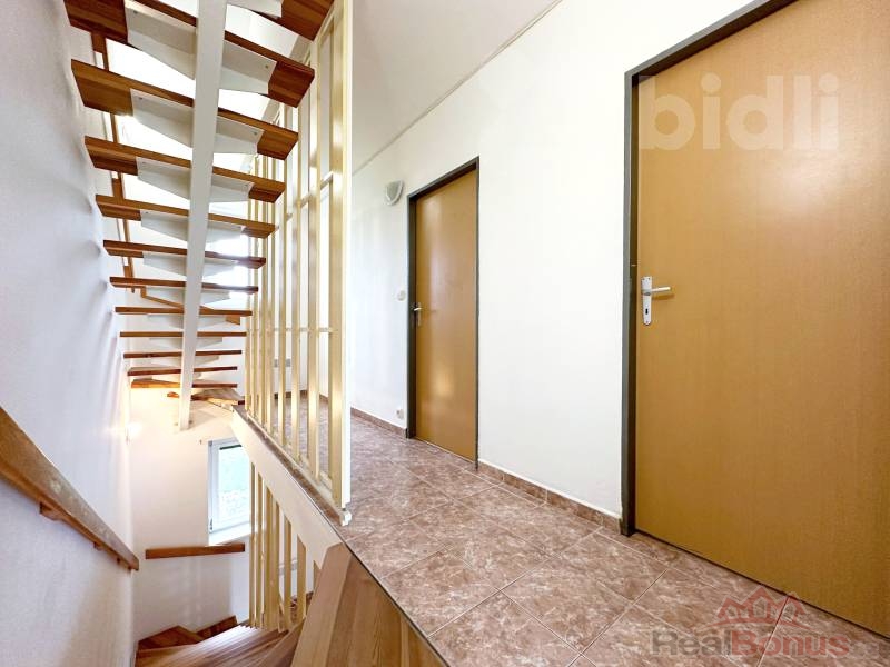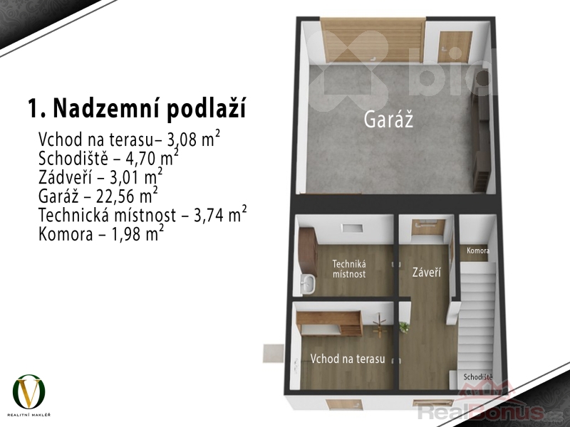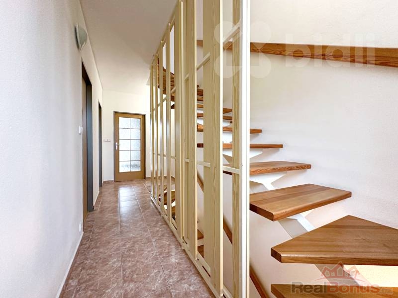 Součástí je garáž a zpevněná plocha před domem, kterou využijete na parkování nebo příjemné posezení Terasa je menší, takže ideální pro někoho, kdo chce venkovní prostor, ale nechce se starat o klasickou zahradu