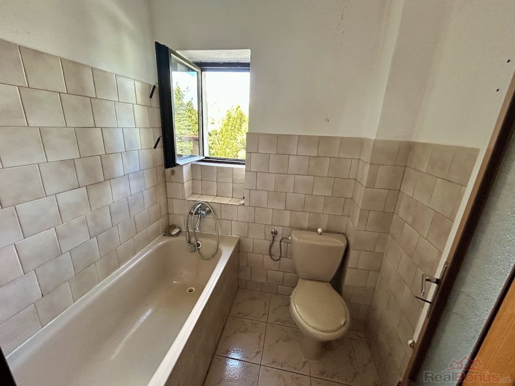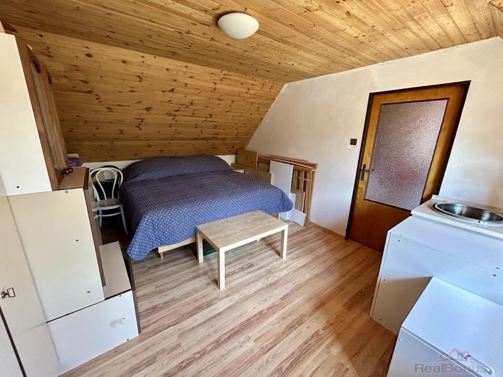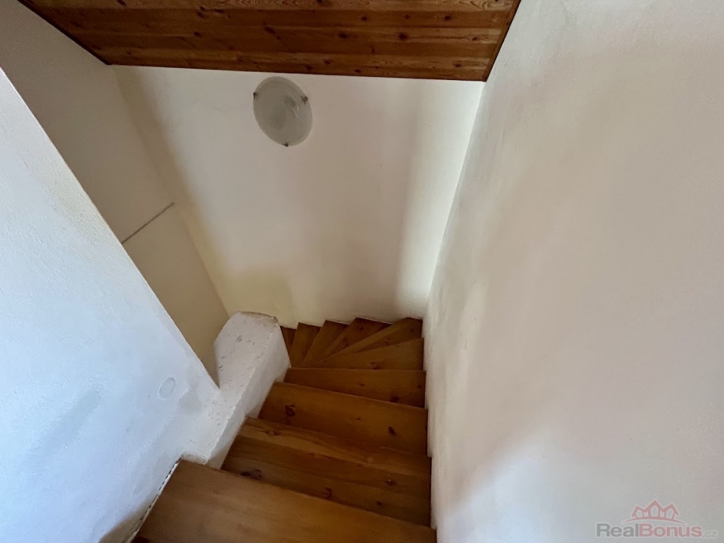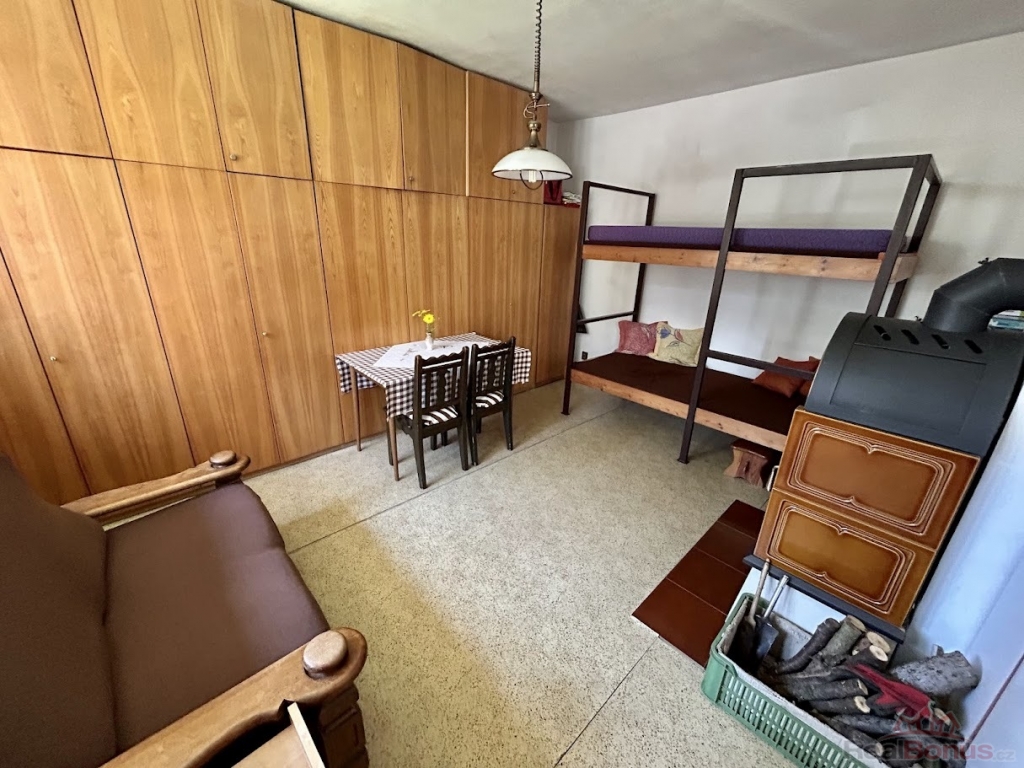 Celková rozloha domu je cca 110 m. V přízemí je veranda a prostorná vstupní hala, kterou vstoupíte do kuchyňské a jídelní části. Dále je zde obývací místnost s krbovými kamny a koupelna s toaletou. Po dřevěných schodech vyjdete do druhého podlaží, kde se nachází dva průchozí pokoje, které je možno spojit do jedné velké místnosti. Díky zavedení vody i do vrchního patra je zde příprava na vybudování další koupelny a toalety.