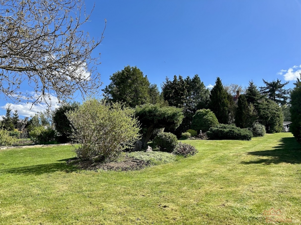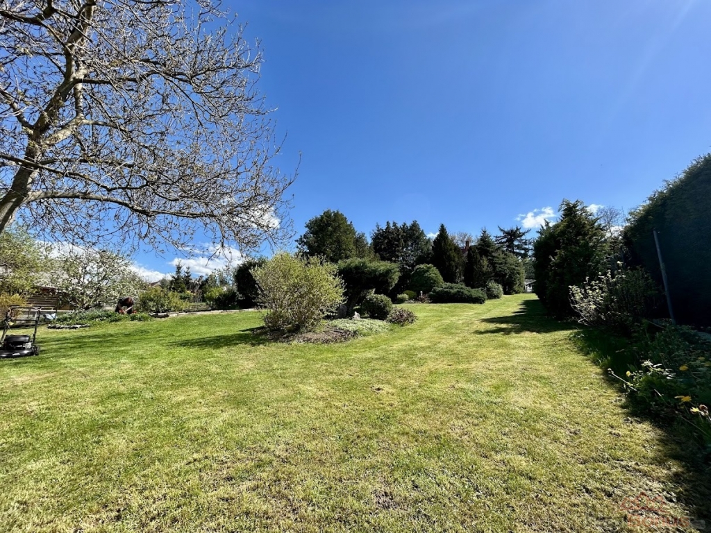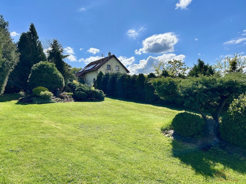 K domu náleží velmi prostorný pozemek o výměře 1.494 m, který je možný rozdělit na dvě samostatné stavební parcely, což mu přidává na hodnotě, pokud by budoucí majitelé uvažovali o další výstavbě event. prodeji části pozemku. Zahrada je majiteli s láskou opečovávaná a připomíná park. Součástí domu je samostatná dvoupodlažní zděná stavba, která slouží v horní části jako prostorná garáž o rozměru 44 m a ve spodní části této stavby je dílna s rozlohou cca 25 m.
