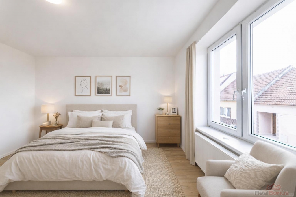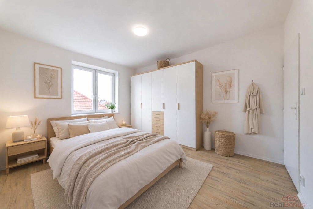 Srdcem bytu je prostorná, otevřená obytná část s moderním kuchyňským koutem, která přirozeně propojuje všechny místnosti. Na ni navazují dvě velké, prosvětlené ložnice, koupelna s vanou a toaletou. Díky promyšlené dispozici je každý metr bytu efektivně využit nenajdete zde žádné zbytečné chodby ani hluchá místa, pouze praktický a pohodlný prostor pro každodenní život.