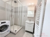 V koupelně je sprchový kout, pračka, umyvadlo se skříňkou a zrcadlem. Samostatné WC je prostorné a vybavené malým umyvadlem a WC sprchou.