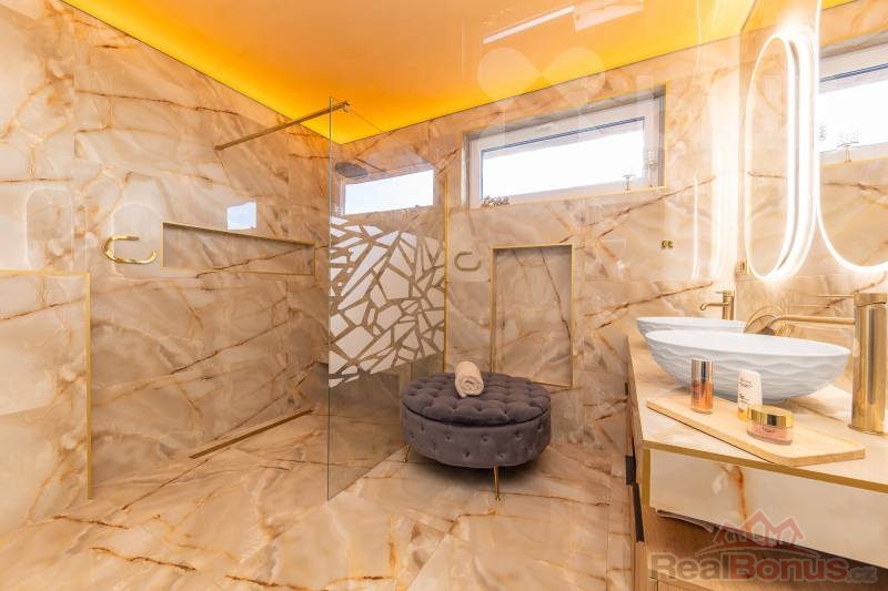 Komfort podtrhuje klimatizace, která se postará o příjemnou teplotu v každém ročním období. Díky fotovoltaické elektrárně o výkonu 5,5 kWp s baterií 10,66 kWh dům chytře šetří energii za vás. Samozřejmostí je napojení na elektřinu, plyn, veřejný vodovod a obecní kanalizaci.