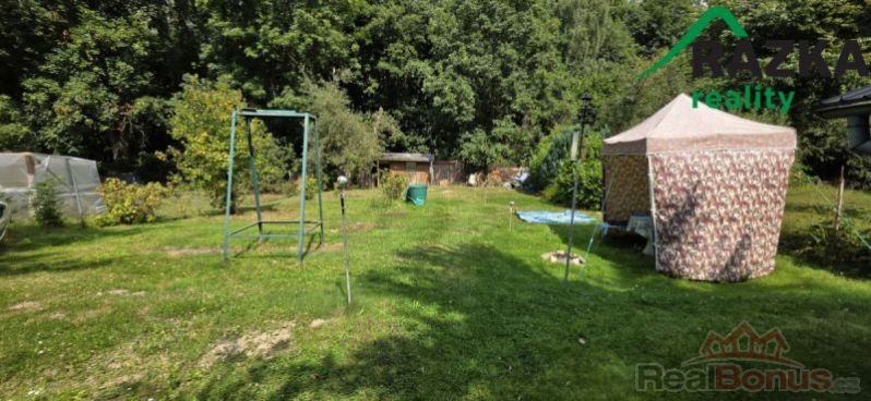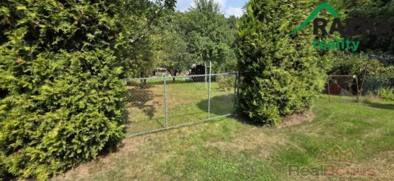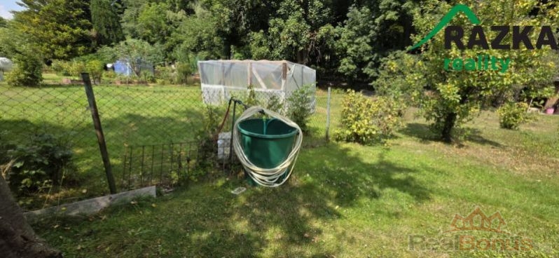 Zahrada je osázená ovocnými stromy a je velmi mírně svažitá. Na pozemku je přípojka pitné vody.