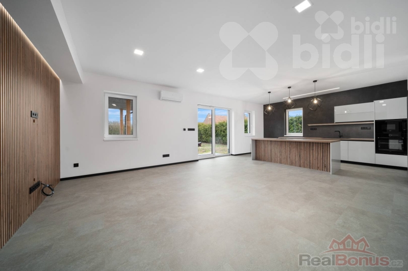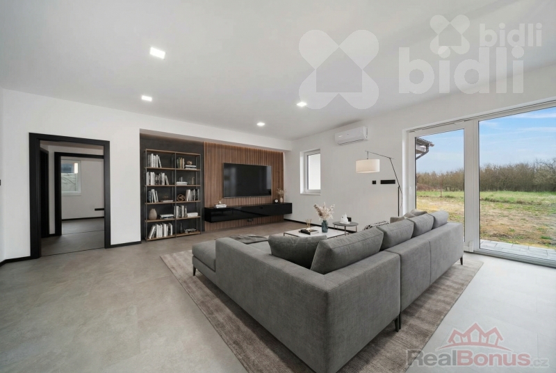 Ke koupi nabízíme samostatně stojící bungalov 4+kk s celkovou užitnou plochou 161,7 m2 (včetně kryté terasy 28,3 m2) v obci Újezd u Přelouče. Jedná se o novostavbu kolaudovanou v lednu 2025, dům je připravený k okamžitému nastěhování.