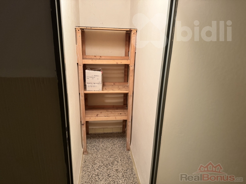 Dispozice bytu zahrnuje dva samostatné pokoje, z nichž jeden má lodžii. Dále pak samostatná kuchyň, komora, nová koupelna se sprchovým koutem a oddělené WC. Na chodbě v patře bytu je druhá vlastní komora. V suterénu obytného domu je k bytu přidělen sklep, k dispozici je i společná kolárna.