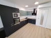Kuchyňská linka se spotřebiči (lednička s mrazákem, varná deska, digestoř, trouba, MV trouba, myčka, dřez, baterie).