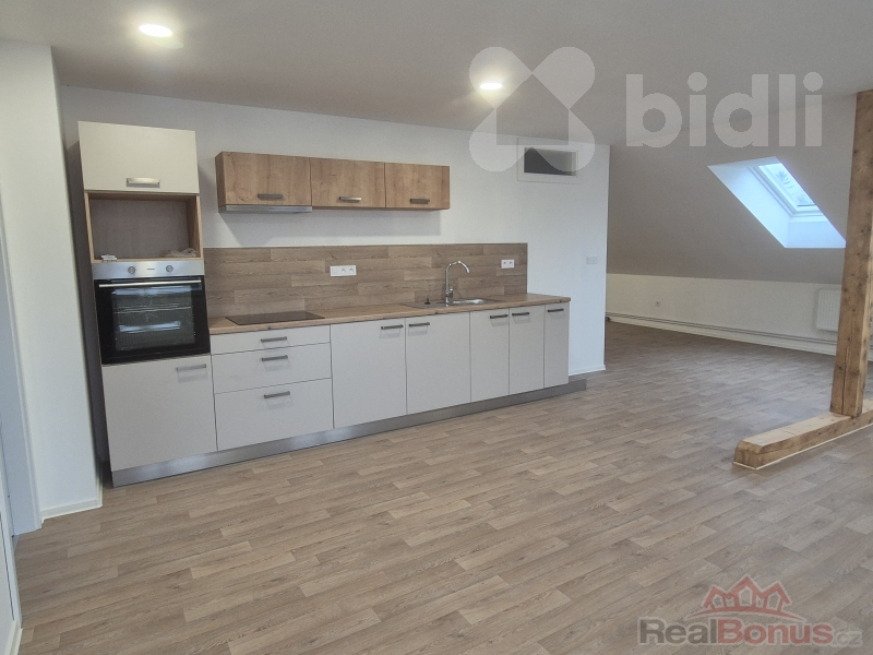 Dispozice: 2+kk (podkroví) cca 81m2.