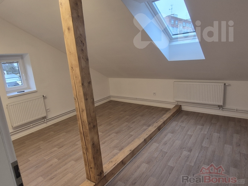 Nabízím k pronájmu podkrovní byt 2+kk v prvním patře cihlového rodinného domu. V domě jsou pouze čtyři bytové jednotky - dvě v přízemí, dvě v patře - takže je tu naprostý klid a soukromí.