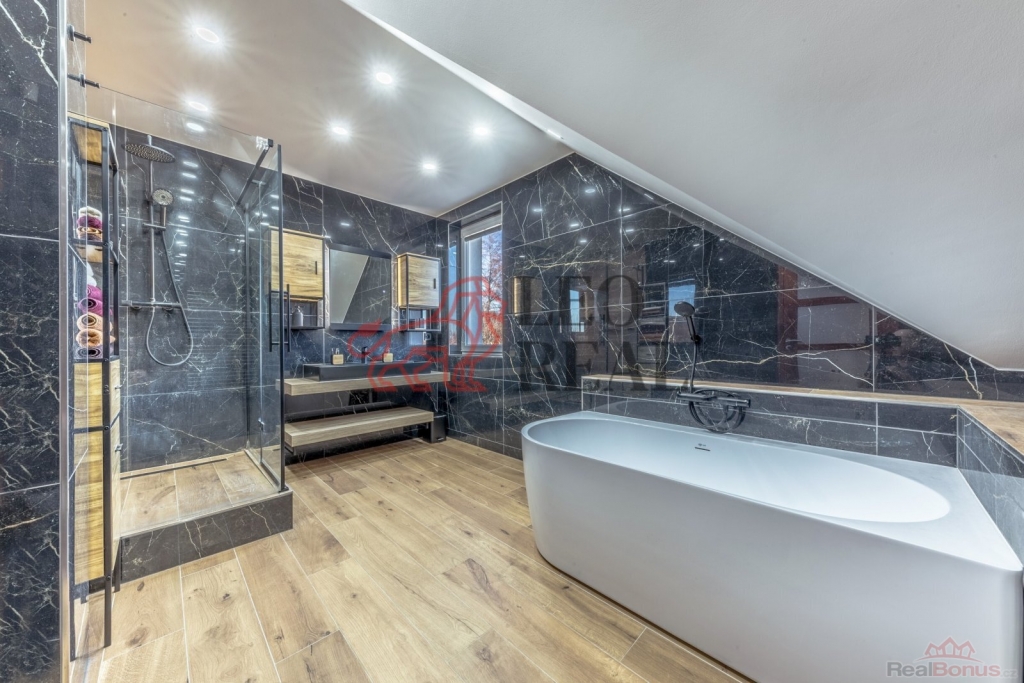 Luxusní koupelny jsou vybaveny moderním zařízením, včetně vany, sprchového koutu a dvojitého umyvadla. Koupelny jsou navrženy s ohledem na estetiku i funkčnost.