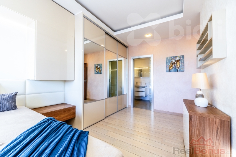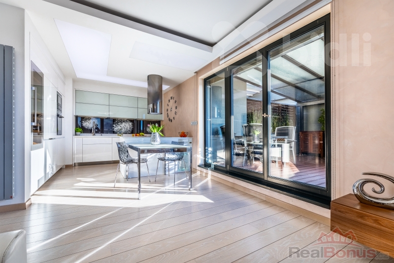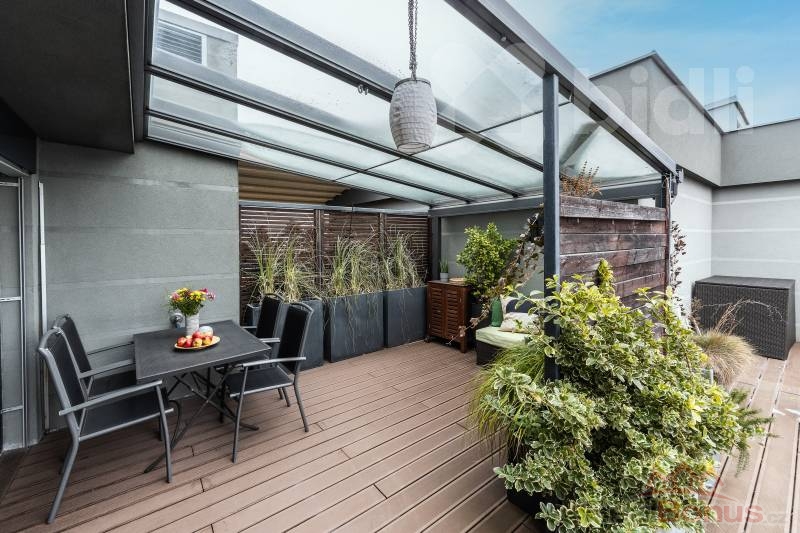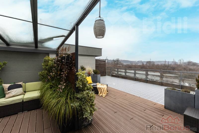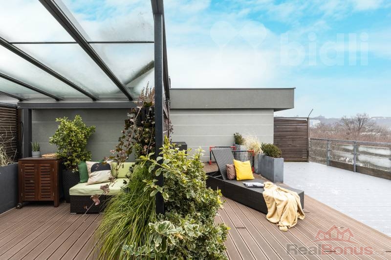Tento kompletně zařízený byt o celkové ploše 191 m² nabízí dispozici 3+kk s možností snadné úpravy na 4+kk (obytná plocha 97 m²). Absolutním klenotem je velkorysá terasa o rozloze 94 m², která obklopuje celý byt a je přístupná z každého pokoje - váš soukromý ráj nad střechami města.