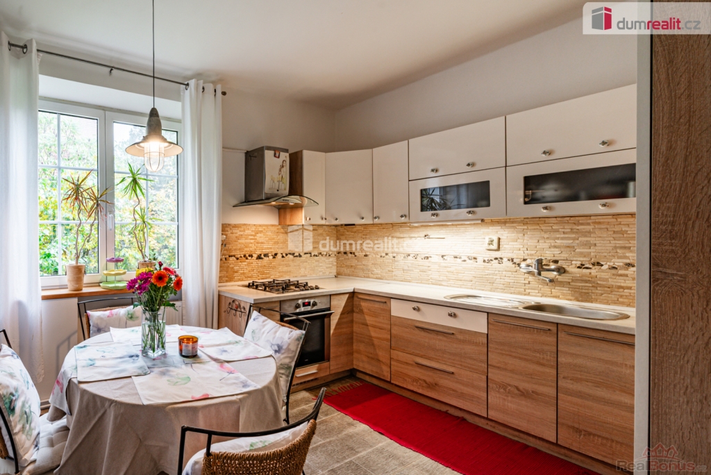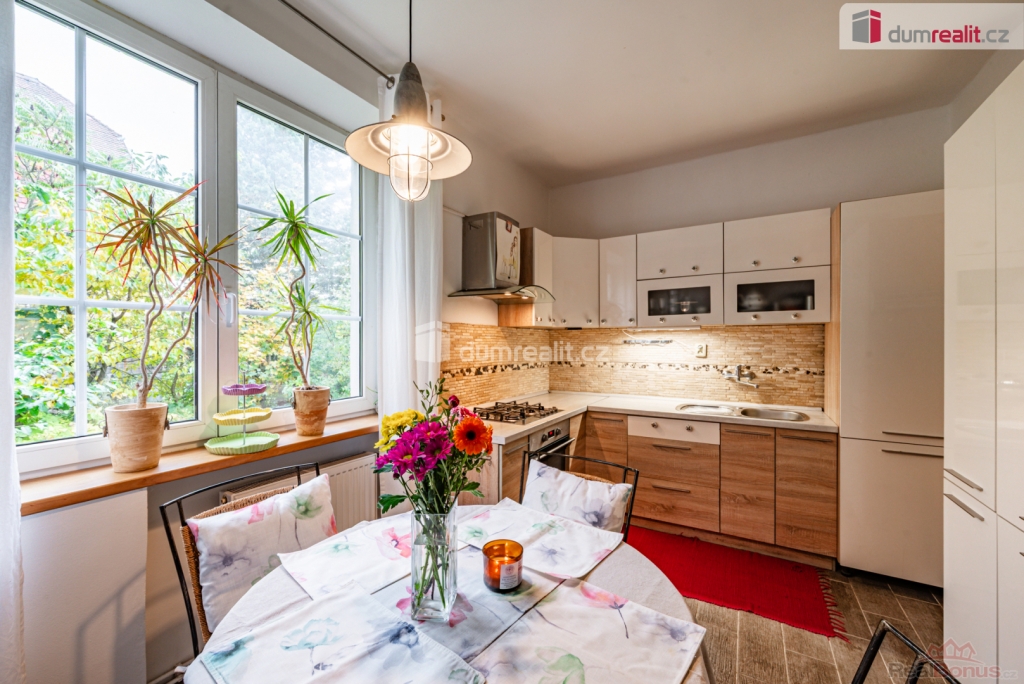 , Dumrealit.cz Vám zprostředkuje koupi krásného bytu 3+1 ve zvýšeném přízemí cihlové vily se zahradou a se dvěma sklepy v klidné krásné ulici v Aši. Bytová jednotka o celkové rozloze 126 m (z čehož 12 m tvoří komora ve druhém patře a 27 m tvoří dva sklepy) je dispozičně velmi dobře řešena, pokoje jsou neprůchozí, z prostorné chodby je přístupná jak kuchyně s jídelním koutem, tak obývací pokoj, dále ložnice, dětský pokoj a koupelna. Bytová jednotka je po zdařilé rekonstrukci vodoinstalace, podlah, nových štuků, omítek, koupelny, kuchyňské linky, Elektroinstalace je v mědi. V bytové jednotce jsou také nová topná tělesa, nové rozvody topení, nové interiérové dveře. Okna zůstala původní dvojitá dřevěná, ale v dobrém stavu, v kuchyni je již okno plastové. Byla instalována nová kuchyňská linka na míru se spotřebiči, v prostorné koupelně je vana, umyvadlo a toaleta. V rámci vybavení bytu zůstávají kvalitní vestavěné skříně. Samozřejmostí je, že zůstává také kuchyňská linka včetně spotřebičů: vestavěná trouba, digestoř a plynový sporák. Vytápění a ohřev teplé vody zajišťuje kondenzační plynový kotel. Přízemí budovy bylo v minulosti odkopáno, opatřeno hydroizolační fólií, byly provedeny injektáže. K bytu náleží dva prostorné sklepy a možnost užívat další společné prostory. Budovu obklopuje pozemek o rozloze 1169 m, zastavěnou plochu domu tvoří cca 135 m, zahrada má tedy celkem 1034 m. V rámci sousedských vztahů je domluveno, že předmětný byt užívá pravou polovinu zahrady. Před domem je bezproblémové parkování. V Aši je veškerá občanská vybavenost, jsou zde škola, školka, městský úřad, supermarkety, obchody, restaurace, travel-free shop, MHD, nádraží atd.. Město je v blízkosti Německa, kde je dobré pracovní uplatnění a možnost výhodných nákupů. Cena zahrnuje provizi RK a veškerý právní servis. V případě zájmu Vám rádi zajistíme financování skrze naše prověřené hypoteční poradce. Ev. číslo: 652865. Energetický štítek: G (20 kWh/m2/rok).