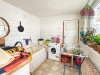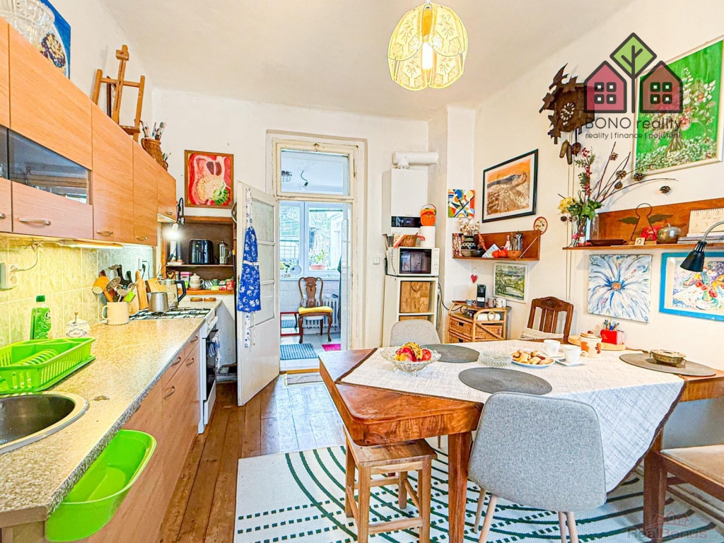 Do domu se vchází právě chodbou, která je průchozí až na zahradu ve vnitrobloku a umožňuje tak snadný přístup z ulice. Obývací pokoj situovaný v prostřední části domu, je přirozeně jeho největší místností a zcela pohodlně pojme veškerý potřebný nábytek i vybavení. Obývací pokoj je také průchozí do dalších částí domu, a to například do kuchyně, která je zařízená zánovní kuchyňskou linkou se spotřebiči a najdeme zde také místo pro jídelní set. Ložnice a dětský pokoj jsou standardních rozměrů a jistě dokáže poskytnout klidné zázemí, a to i s výhledem do zahrady. K dispozici je také další menší místnost, dříve využívaná jako koupelna. Tato místnost by nyní mohla být technickým zázemím domu, dílnou či kanceláří.