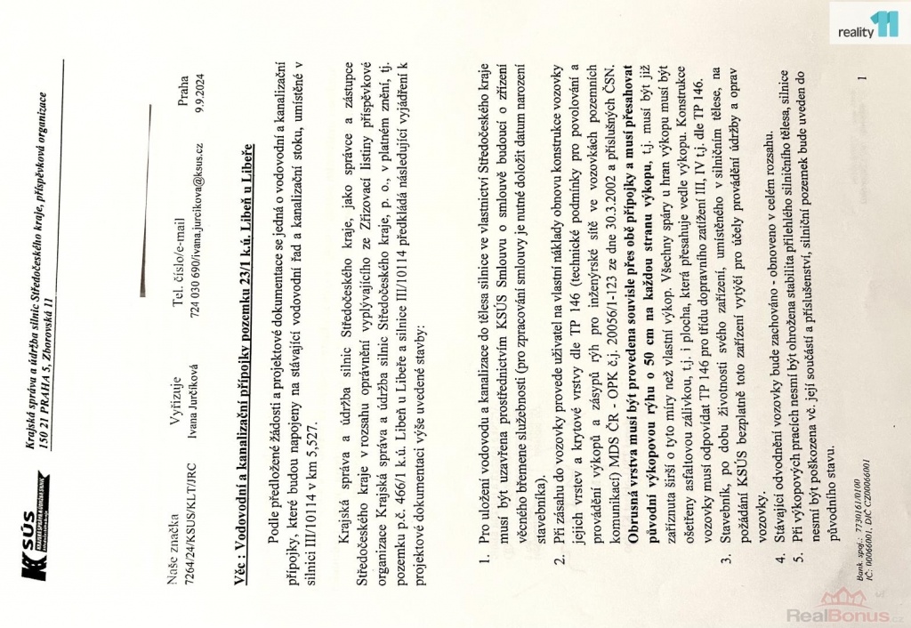 Neplatíte provizi RK. Jednat budete přímo s majitelem nemovitosti., Reality 11 Vám zprostředkují prodej stavebního pozemku, který se nachází v obci Libeň u Libře na Praze Západ cca 2 km od Dolních Břežan.