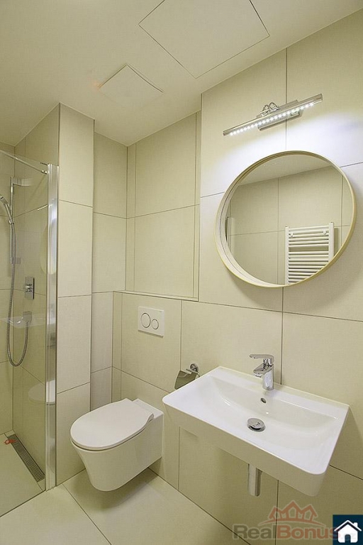 Koupelna je vybavena prostorným sprchovým koutem a WC je společné.