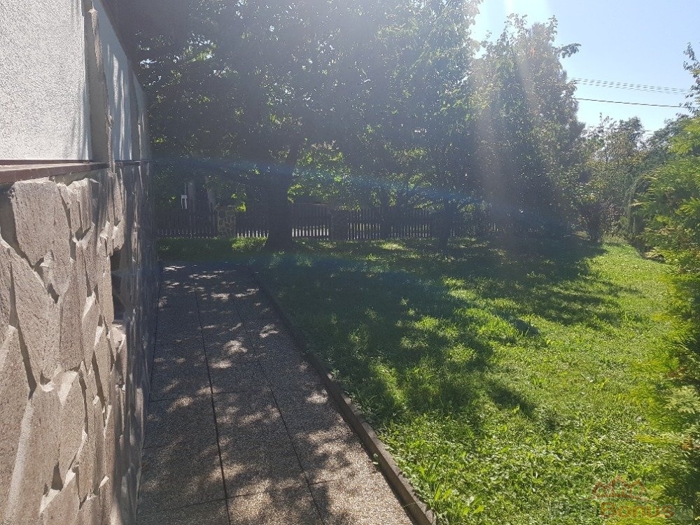 Na zahradě se nachází ovocné a okrasné stromy a keře, různého druhu a stáří a také pergola s krbem.
