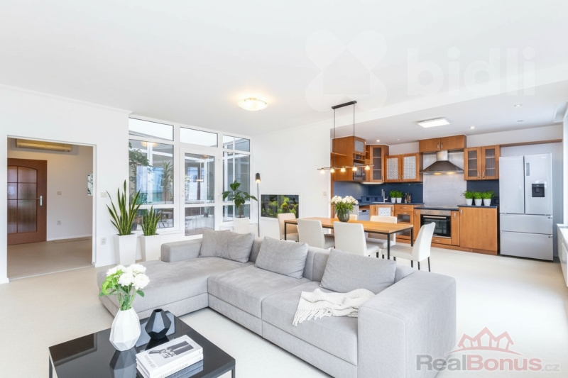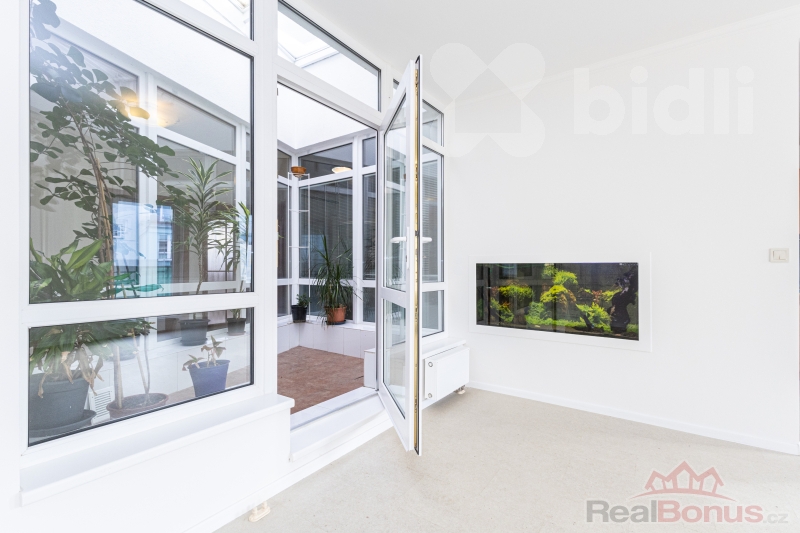 Toužíte po domácí sauně či minitělocvičně nebo milujete zelené rostliny a květiny, bylinky, domácí jahody a rajčata, ale zároveň potřebujete zázemí velkoměsta? Pak je tu pro vás jedinečný, prostorný a prosvětlený byt o dispozici 3+kk, který má navíc dvě velké terasy a vnitřní zimní zahradu. Umístěn je v Praze 4 pár kroků od Kunratického lesa, v Zeleném údolí, kde se spojuje komfort městské vybavenosti čtvrtí Krč, Libuš a Kunratice s blízkostí přírody v největším lese v Praze.