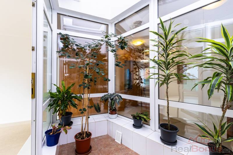 Originálním prvkem je zimní zahrada vprostřed bytu, která tvoří úžasnou zelenou oázu viditelnou ze všech zákoutí bytu a je skvělým místem pro vestavbu sauny, pro umístění běhacího pásu či rotopedu, pro bohaté pěstování květin, například krásných orchidejí, nebo pro umístění převislých květináčů s jahodami a dalším ovocem, zeleninou a bylinkami. Dalším relaxačním místem jsou hned dvě terasy - větší, jižně orientovaná a vybavená markýzou, navazuje na jídelnu a nabízí možnost venkovního stolování, na druhou, severozápadní, se vstupuje z ložnice rodičů. Je odsud výhled na dětské hřiště ve vnitrobloku a možnost posezení pro večerní pohodu. Díky umístění v nejvyšším patře terasy nabízí klid, soukromí a krásné výhledy.