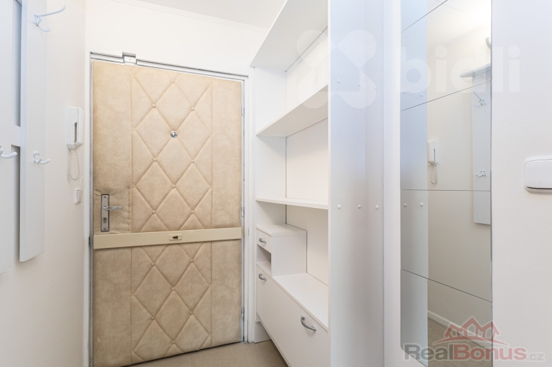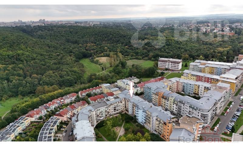 S bytem lze zároveň pronajmout či koupit garážové stání, dostatečně velké pro osobní automobil i motorku. Společné prostory domu jsou dobře udržované. Vytápění a teplá voda jsou centrální.