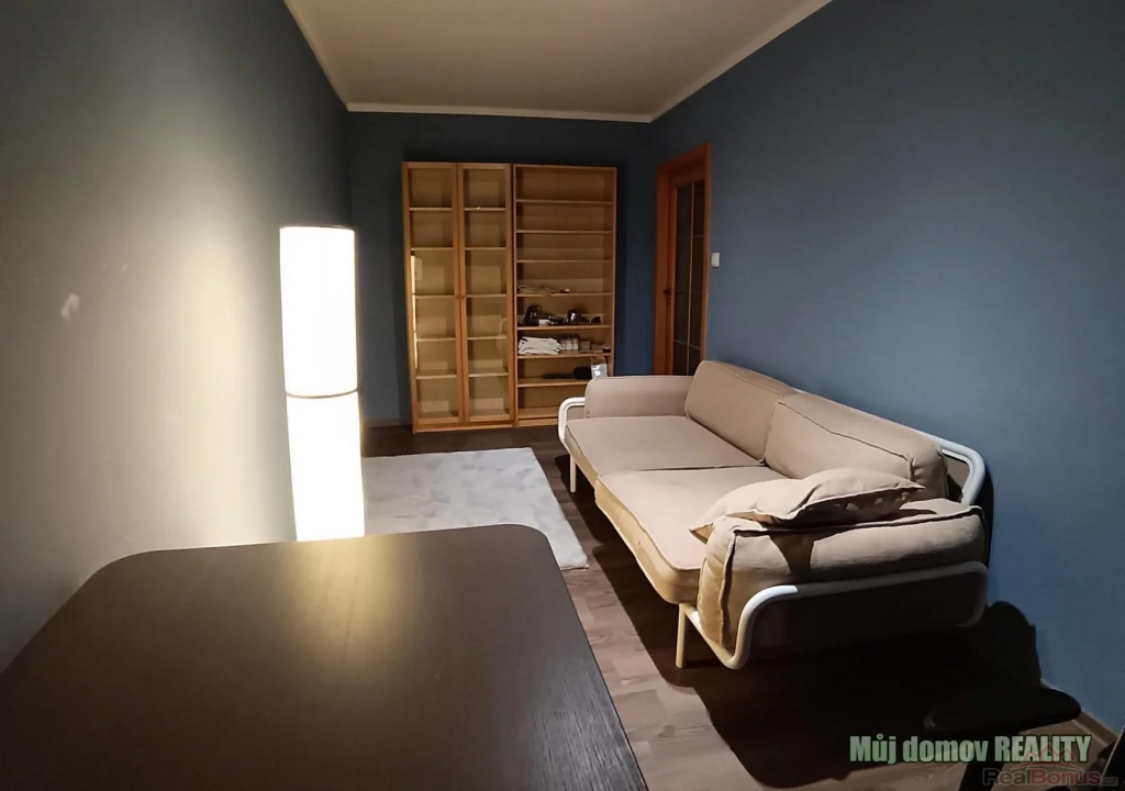* **Pracovna / druhý pokoj:** gauč, pracovní stůl, kancelářská židle, knihovna, skříň