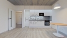 Součástí bytu je kuchyňská linka na míru s kamennou pracovní deskou a vestavěnými spotřebiči AEG, která splní očekávání i náročnějších klientů.