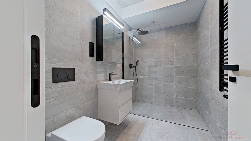 - designový walk-in sprchový kout se skleněnou zástěnou a podomítkovou baterií