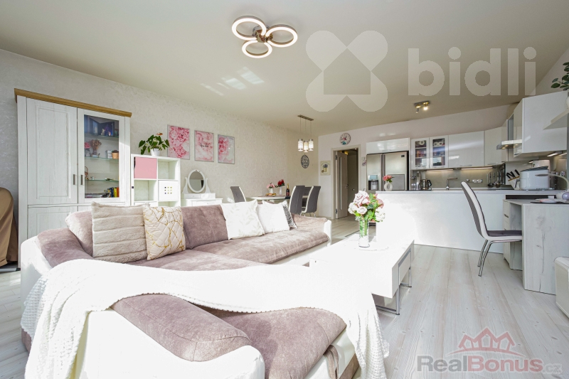 Bytová jednotka o dispozici 3+kk nabízí praktické a velmi dobře řešené uspořádání: