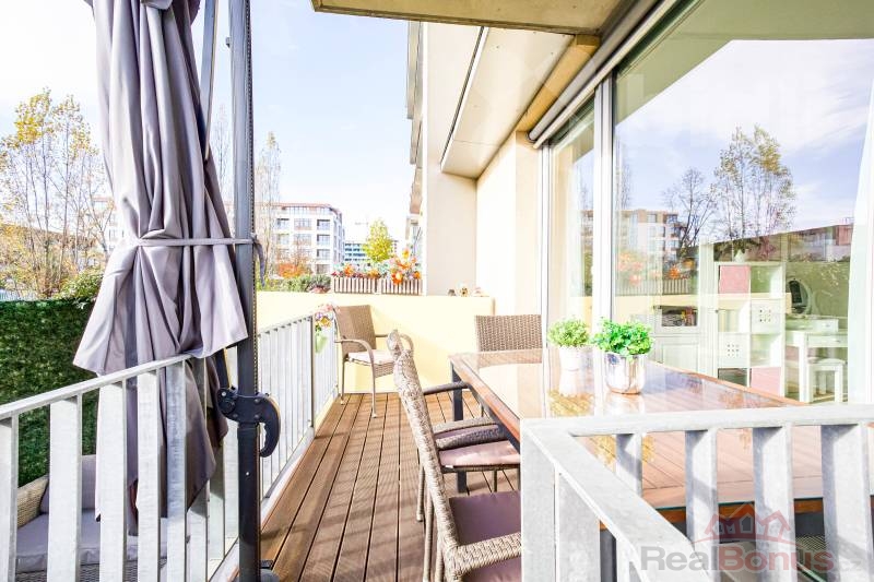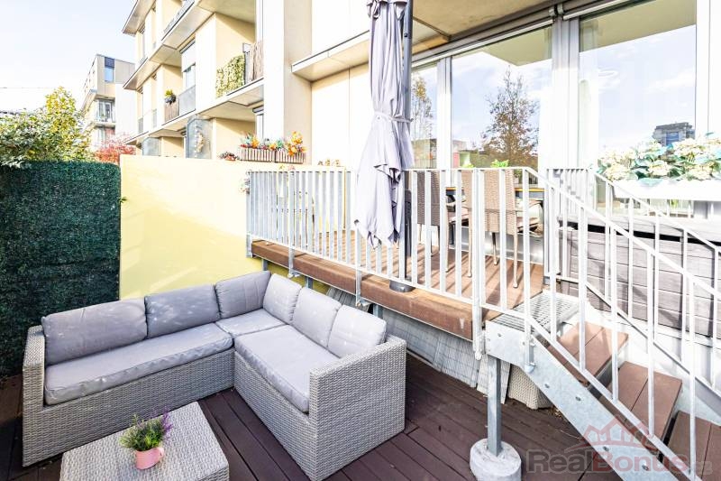 Nabízíme vám prostorný a výjimečně světlý byt 3+kk s podlahovou plochou 93 m2, doplněný o dvě terasy o celkové výměře 30 m2 a předzahrádku o velikosti 14 m2. Nemovitost se nachází v moderní cihlové novostavbě z roku 2016, projekt Byty Vackov, v klidné a žádané rezidenční čtvrti Vackov na Praze 3. Byt atraktivně kombinuje promyšlenou dispozici na dvě světové strany, dvě venkovní terasy s předzahrádkou a současně maximální soukromí. Součástí prodeje je garážové stání a sklepní kóje, přičemž v lokalitě je dlouhodobě možné pronajmout minimálně další dvě parkovací místa. Část domu zasazené v klidném vnitrobloku plný zeleně, kde se byt nachází, má pouze dvě podlaží. Díky tomu působí terasy s předzahrádkou mimořádně příjemně, otevřeně a nerušeně.