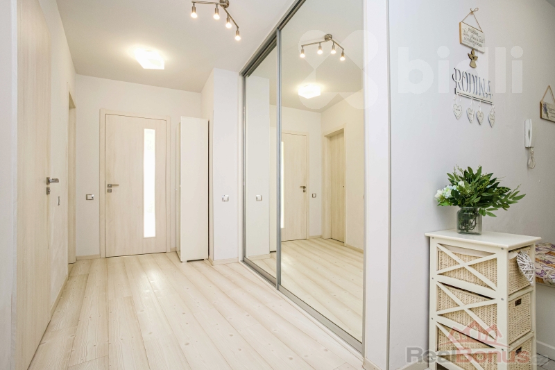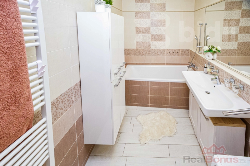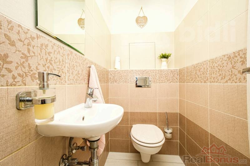 Koupelna (5,1m2), samostatné WC (1,8m2) a vstupní chodba (14,9m2) s vestavěnými skříněmi nabízejí dostatek úložného prostoru.