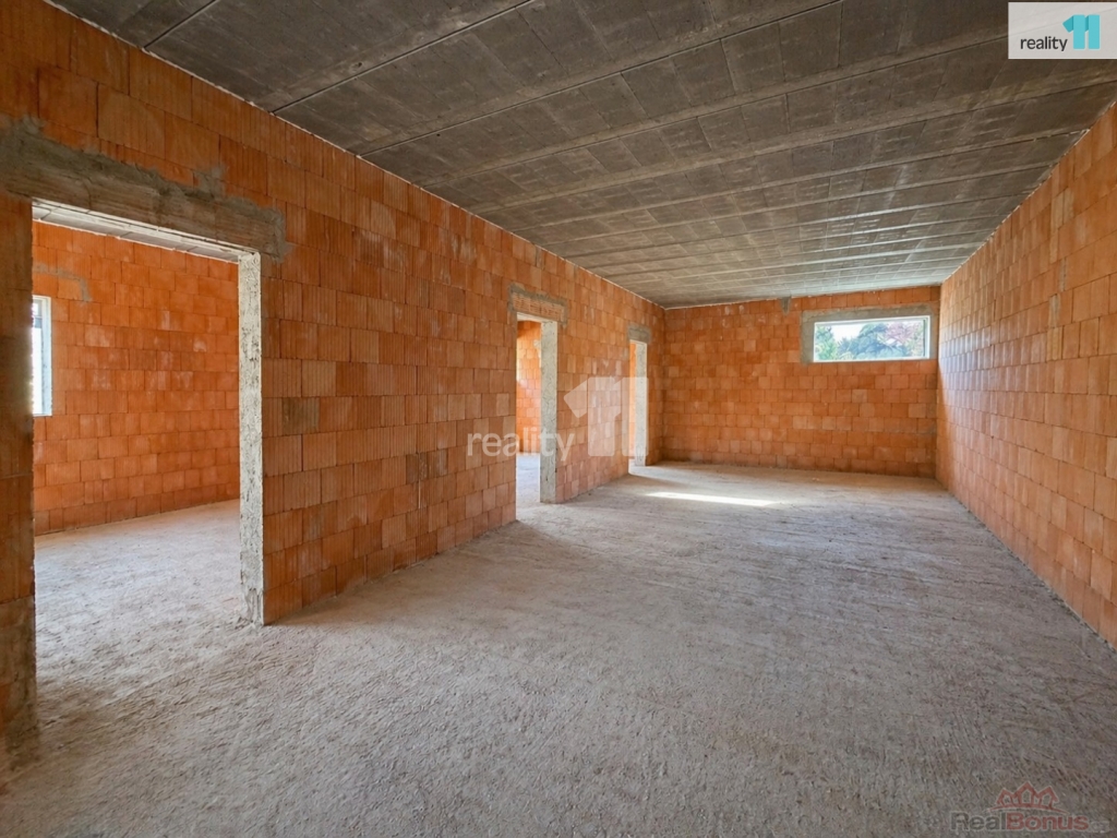 , Nabízíme exkluzivně k prodeji rozestavěný rodinný dům ve Štokách, okres Havlíčkův Brod, Kraj Vysočina s možností dokončení dle projektu do moderní, nadstandardně řešené novostavby. Dům je situován na pozemku o velikosti 1 023 m v přímém sousedství centra obce. Po plánovaném dokončení v roce 2026 vznikne přízemní nepodsklepený rodinný dům s dispozicí 5+kk a celkovou podlahovou plochou 200 m + terasa 27m a možnosti vestavby podkroví o ploše 156m. Součástí projektu je i prostorná garáž o výměře 125 m, vhodná pro několik vozidel či dílnu, a také velkorysá terasa o ploše 27 m.