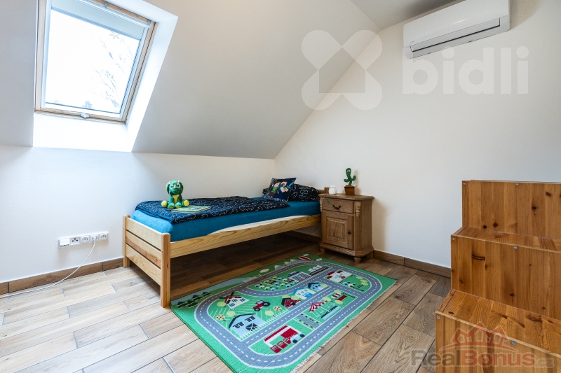 Výjimečnou přidanou hodnotou této nemovitosti je prostorná dvougaráž o rozloze 50 m², která disponuje vlastní půdou. Společně s půdním prostorem nad samotným domem tak nemovitost nabízí nadstandardní množství úložných prostor. Dům je vybaven špičkovými technologiemi, které zajišťují minimální provozní náklady a maximální komfort. O vytápění se stará tepelné čerpadlo napojené na podlahové topení v celém domě, zatímco o energetickou soběstačnost se opírá fotovoltaická elektrárna o výkonu 10 kWp s bateriovým úložištěm. Příjemné klima v letních měsících zajišťuje klimatizace v každém pokoji a o bezpečí vaší rodiny se stará systém Jablotron spolu s kamerovým systémem.