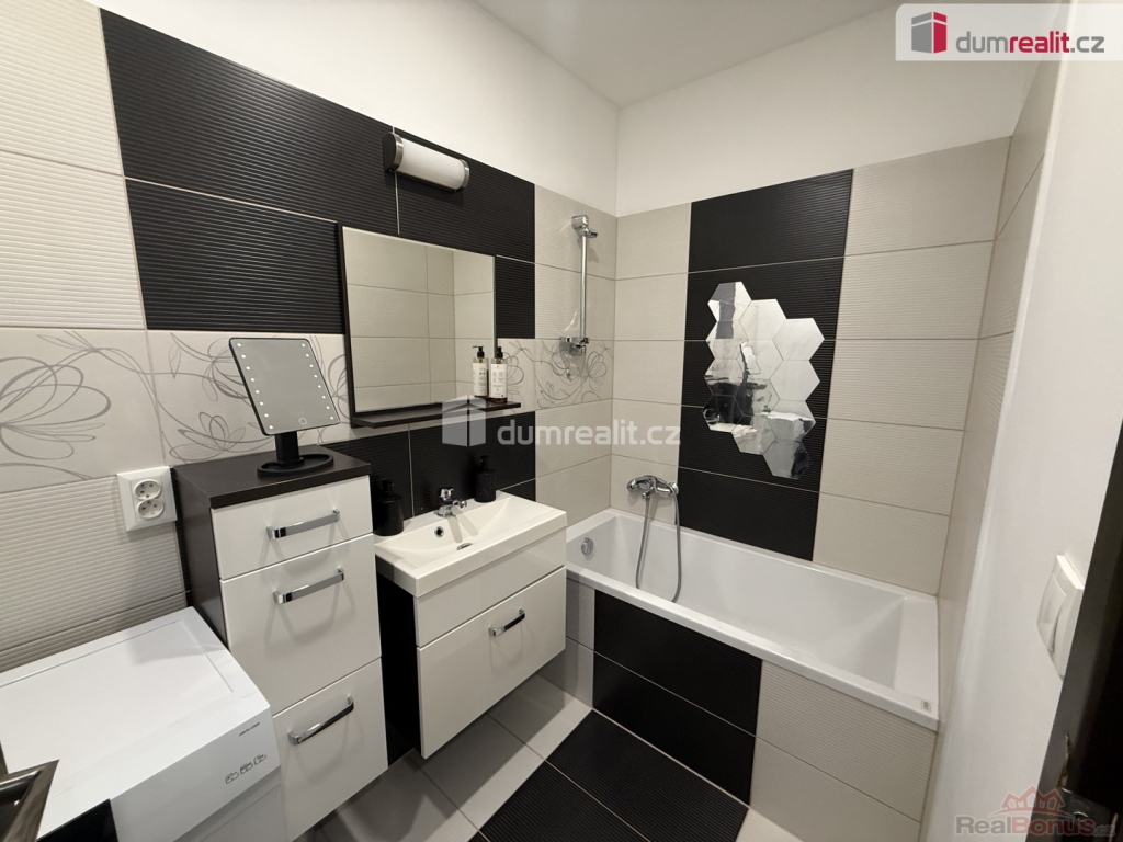 koupelna vybavená nábytkem + pračka