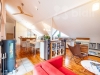 Velkorysý obývací prostor propojený s elegantní kuchyní a jídelnou. Večer si můžete zpříjemnit posezením u francouzského okna s praskajícím ohněm v krbových kamnech.