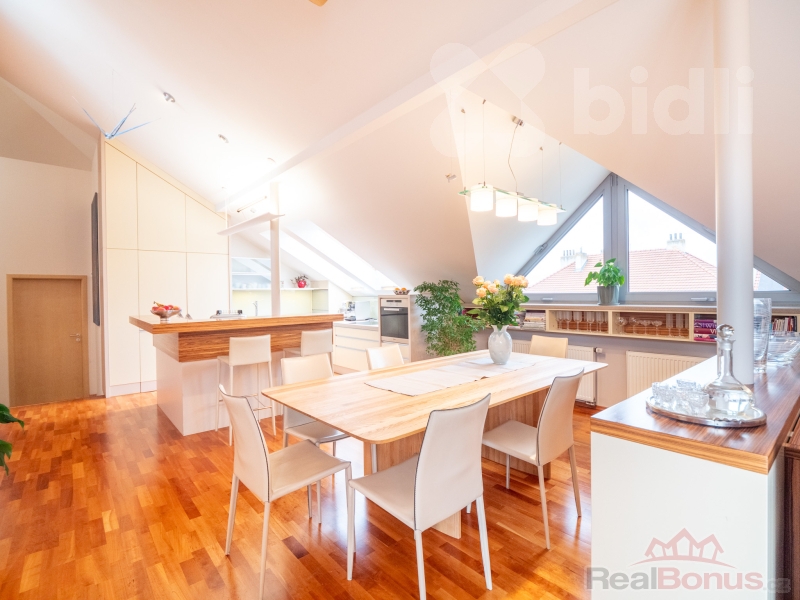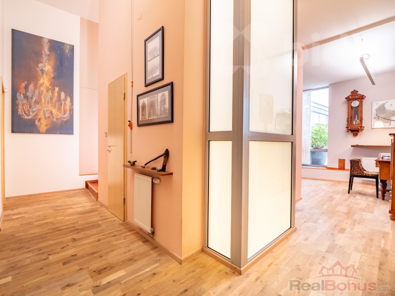 Byt se nachází ve 3. patře a nabízí prostorné uspořádání, které splňuje vysoké nároky na příjemné bydlení. Architektonický návrh od renomovaných tvůrců Patrika Kotase a Hynka Maňáka proměnil původní půdu, rozprostírající se přes čtyři bytové jednotky, v jedinečný a vzdušný prostor.