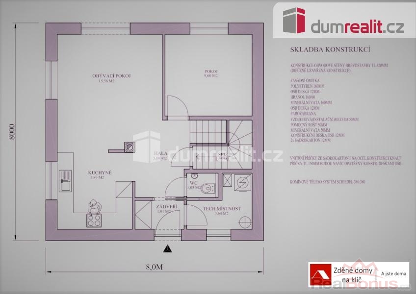 Cena včetně stavby domu na klíč, pozemku a DPH., Dumrealit.cz Vám zprostředkuje výstavbu patrového domu 5+kk s užitnou plochou 93m v Bojkovicích. Součástí uvedené ceny je i pozemek o velikosti 1227m o šíři 13m a délce cca 88m, který je územním plánem schválen pro výstavbu rodinného bydlení. Jedná se o patrový dům, ideální až pro 5 člennou rodinu s nízkými provozními náklady. Uvedená cena je za kompletní výstavbu domu na klíč, včetně DPH, projektové dokumentace, vyřízení stavebního povolení, základové desky až po kolaudaci. V projektu jsou možné variabilní úpravy dispozice (posuny příček či oken). V uvedené ceně můžete počítat s finálními povrchovými úpravami exteriéru i interiéru, a to včetně elektroinstalací, sanitárního vybavení s bateriemi, interiérovými dveřmi včetně obložek, vytápění je řešeno teplovodním podlahovým topením v kombinaci tepelného čerpadla se 180L zásobníkem na teplou vodu. Za příplatek změníme systém vytápění nebo vystavíme komín pro krbové kamna nebo pro využití krbové vložky. Garáž spojená s domem, za příplatek. Pro náročnější klienty máme nabídku nadstandardního vybavení chytré domácnosti, klimatizaci, externí žaluzie a rolety a další. Doba výstavby cca 14 měsíců od vydání stavebního povolení a stavbu zahájíme do 10 dnů od jeho vydání. Smlouvy o dílo zašleme na vyžádání včetně vzorového položkového rozpočtu. Možnost výstavby pouze hrubé stavby za 2.816.000,-Kč. Tento typ domu Vám rádi ukážeme, který je k dispozici nedaleko Bojkovic. Seznámíte se se skladbou materiálů a můžete si tak projít dispozice domu. Podrobnější informace, včetně změny stavebního materiálu například na dřevostavbu, naleznete na webových stránkách naší spolupracující firmy Zděné domky na klíč. Máte-li svůj projekt nebo jen nějakou představu, pošlete nám ji a my vám jej naceníme. Změna na jiný typ domu je možná. Pomůžeme i s hledáním vhodného pozemku dle zaslaného zadání. Fotografie domů jsou domy, které jsme jednak realizovali, ale také vám je rádi ukážeme. Doporučuji prohlídku! Ev. číslo: 653506. Energetický štítek: A (49 kWh/m2/rok).