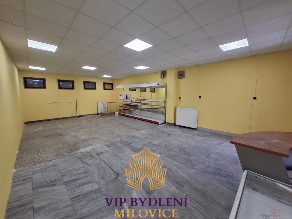 Nabízíme Vám k pronájmu obchodní prostor o výměře 63 m2 v Milovicích, ulice Mírová. Obchodní prostor s výlohou má samostatný vstup z ulice. Momentálně se jedná o místnost o rozměru š. 5,5 m x d. 11,5 m. Místnost je možno po dohodě rozdělit dle přání nájemce na více částí. V prodejně je k dispozici jedna toaleta a umyvadlo s teplou vodou. Prostor možno využít jako provozovnu, sklad, prodejnu nebo kancelář. V blízkosti se nachází další obchody, nádraží a autobusová zastávka. Nájem je 15.000,- Kč + 5.000,- Kč zálohy za energie, 20.000,- Kč vratná kauce + poplatek RK. Volné ihned.