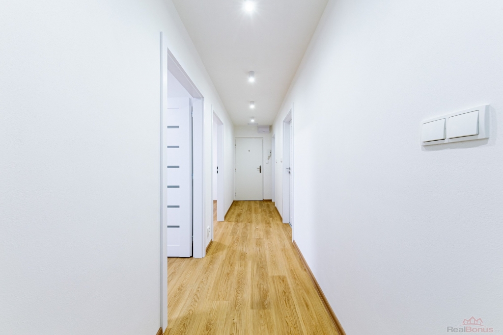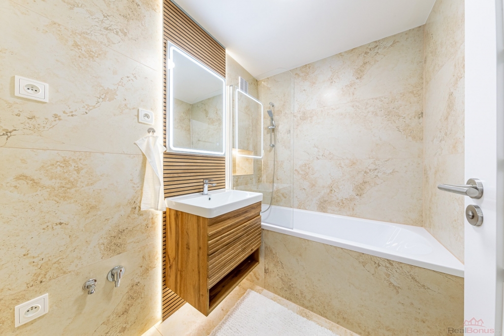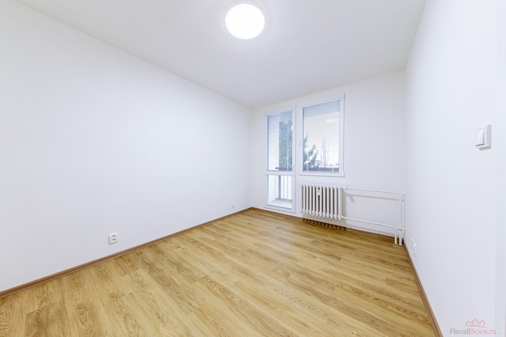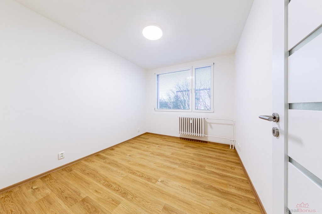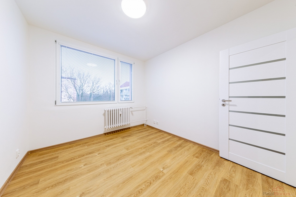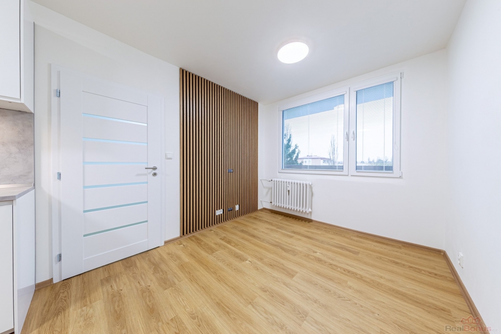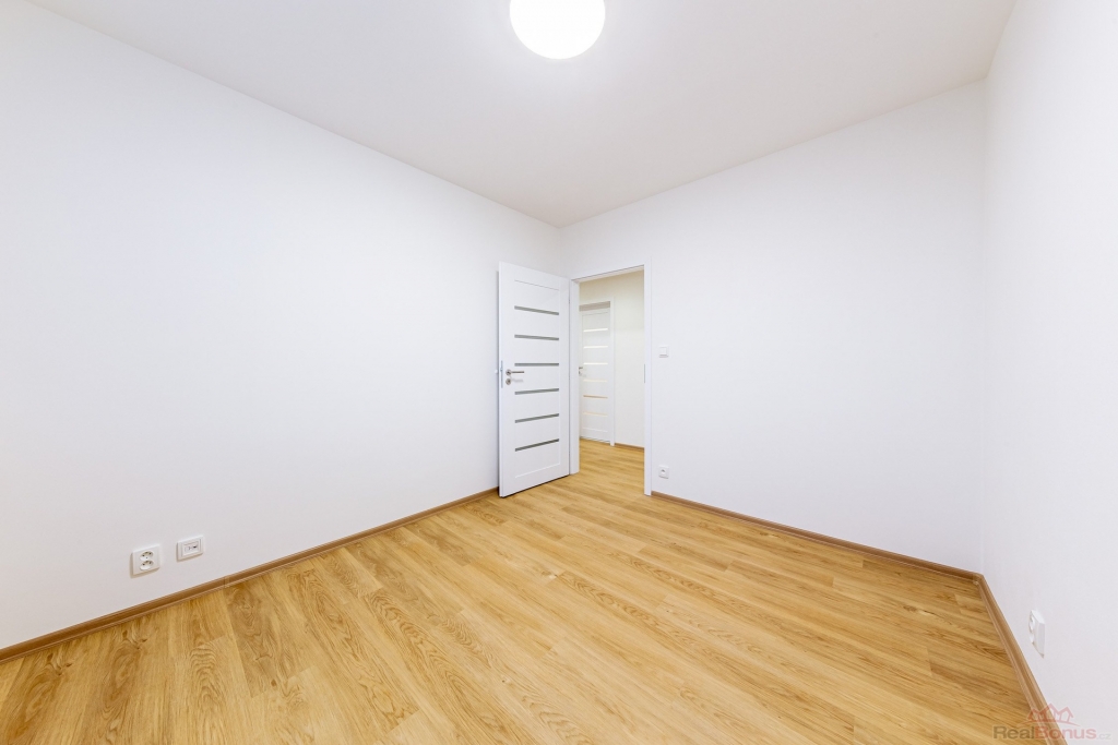 V bytě jsou nová plastová okna s izolačními trojskly (v obývacím pokoji a ložnici), nová elektroinstalace včetně revize, nové zásuvky a vypínače, nové rozvody vody a odpadů, koupelna s vanou včetně skleněné zástěny, koupelnová skříňka s umyvadlem včetně baterie, LED zrcadlo, LED osvětlení panelu včetně niky v koupelně, elektrický koupelnový radiátor, vestavěné WC, umývátko se skříňkou, bidetová sprška, LED zrcadlo, LED osvětlení panelu, ventilátor, nové horizontální žaluzie, vinylové podlahy, LED osvětlení celého bytu, akustické panely na chodbě a obývacím pokoji, nové interiérové dveře a zárubně, protipožární dveře.