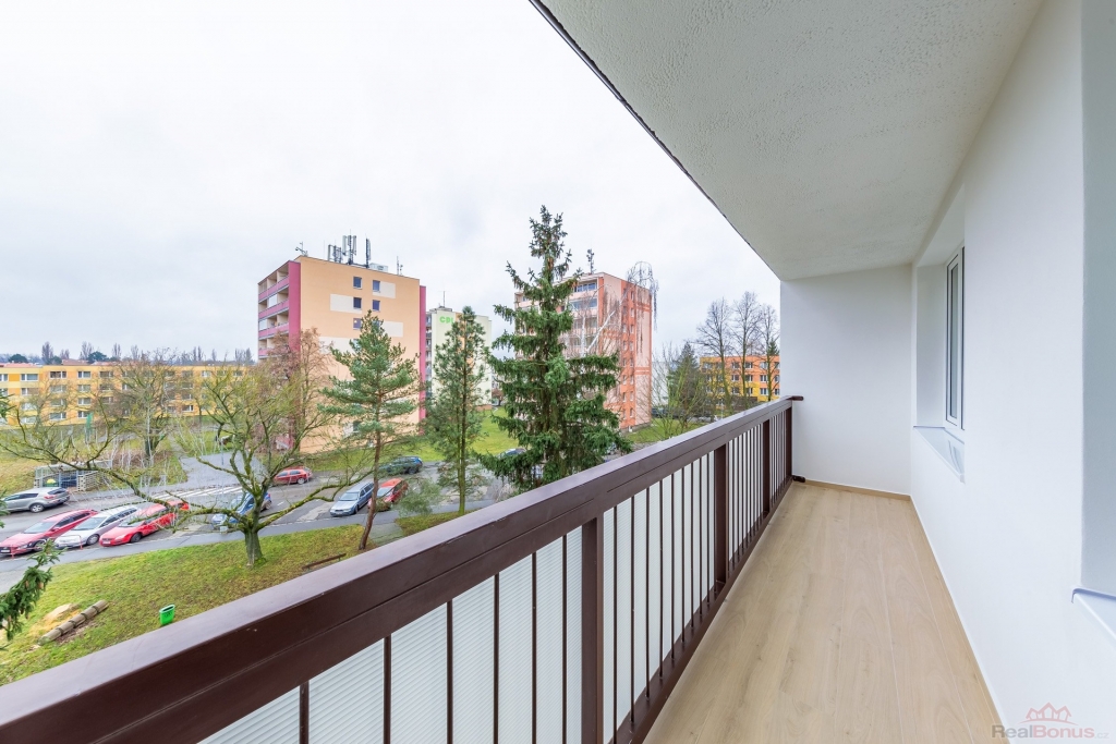 Dispozici bytu tvoří obývací pokoj s kuchyňským koutem, ložnice, 2x pokoj, chodba, WC, koupelna a lodžie.