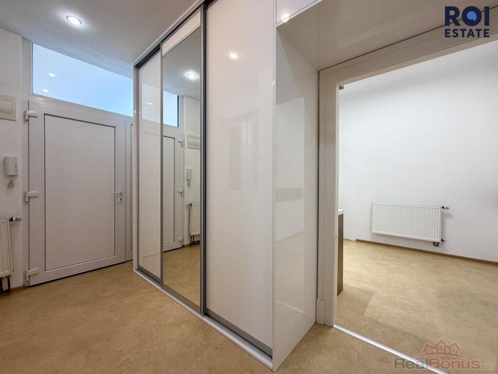 Byt má prostornou vstupní chodbu s vestavěnou skříní na míru, která poskytuje velké množství úložného prostoru. Dispozice je řešena velmi prakticky ? z chodby je samostatný vstup do všech místností, což zajišťuje pohodlí i dostatek soukromí.