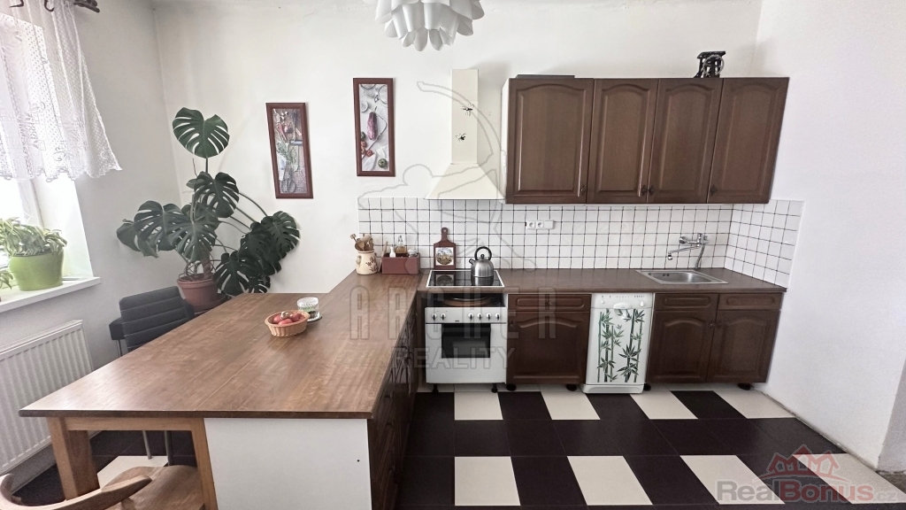 Dispozice jednotky 3+1 v 1.NP: Ze zádveří vstupujete do koupelny se sprchovým koutem, samostatného WC a součástí je i technický kout s plynovým kotlem i kotlem na tuhá paliva. Dále se dostáváme do vybavené kuchyně s jídelním stolem a dále do menšího obývacího pokoje. Odsud je vstup do dalších dvou neprůchozích pokojů, jeden dětský a jedna ložnice.