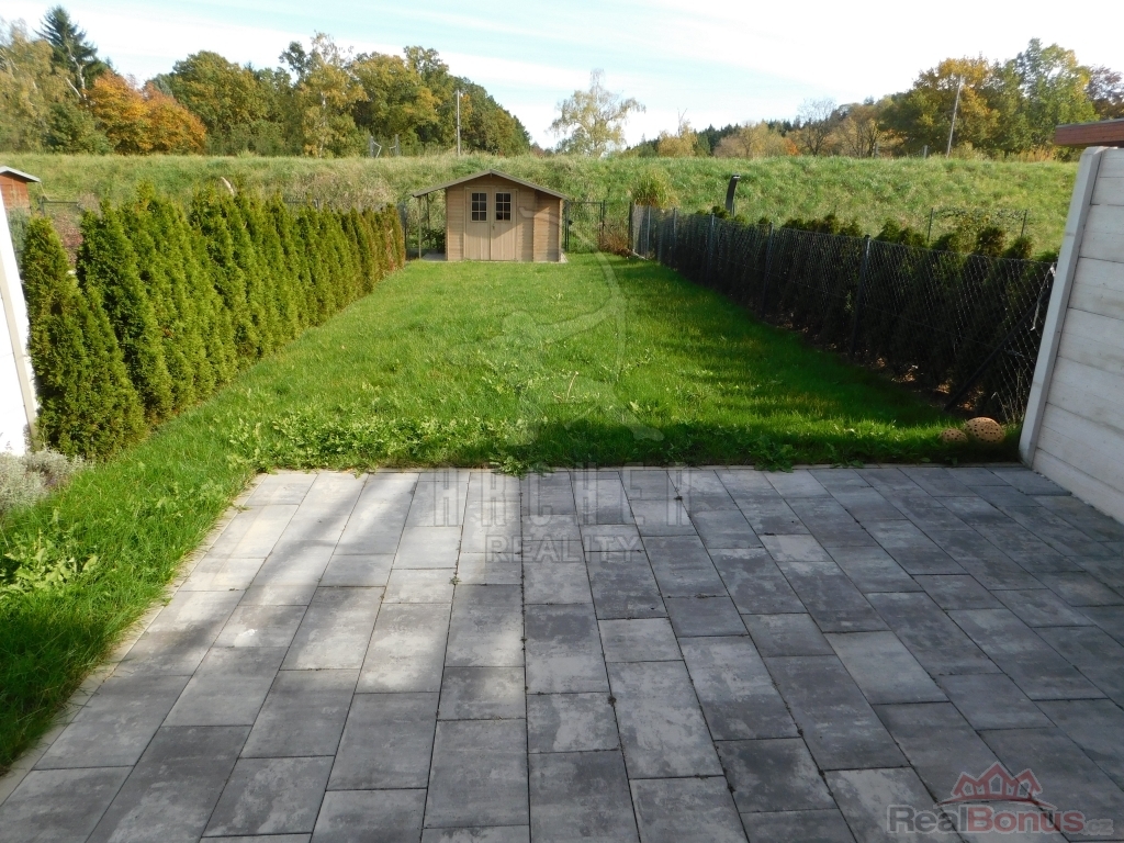 Vytápění včetně ohřevu ohřevu vody zajišťuje úsporný elektrický kotel a veškeré náklady na bydlení činí celkem 4500 Kč. Upravená rovná zahrada s kobercovým trávníkem přímo zve na posezení i poležení.