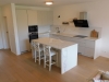 Podlahy jsou z dýhy bez suků a schodiště z bukového dřeva vás dovede do prvního patra, kde se nachází prostorná koupelna s vanou se sprchou a dvěma umyvadly, obložení je velkoformátovými obklady.