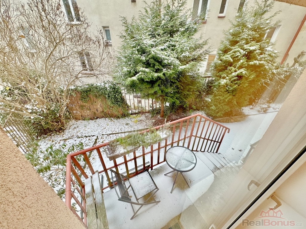 Nabízíme světlý a tichý byt 2+kk s krásným výhledem do zeleně, terasou s posezením a přímým vstupem na zahradu uzavřeného dvora ideální místo pro pohodlné a klidné bydlení.