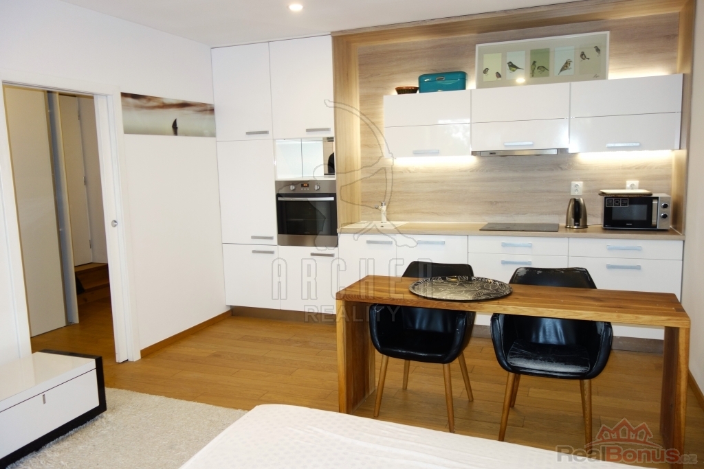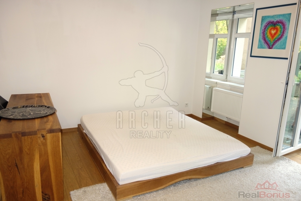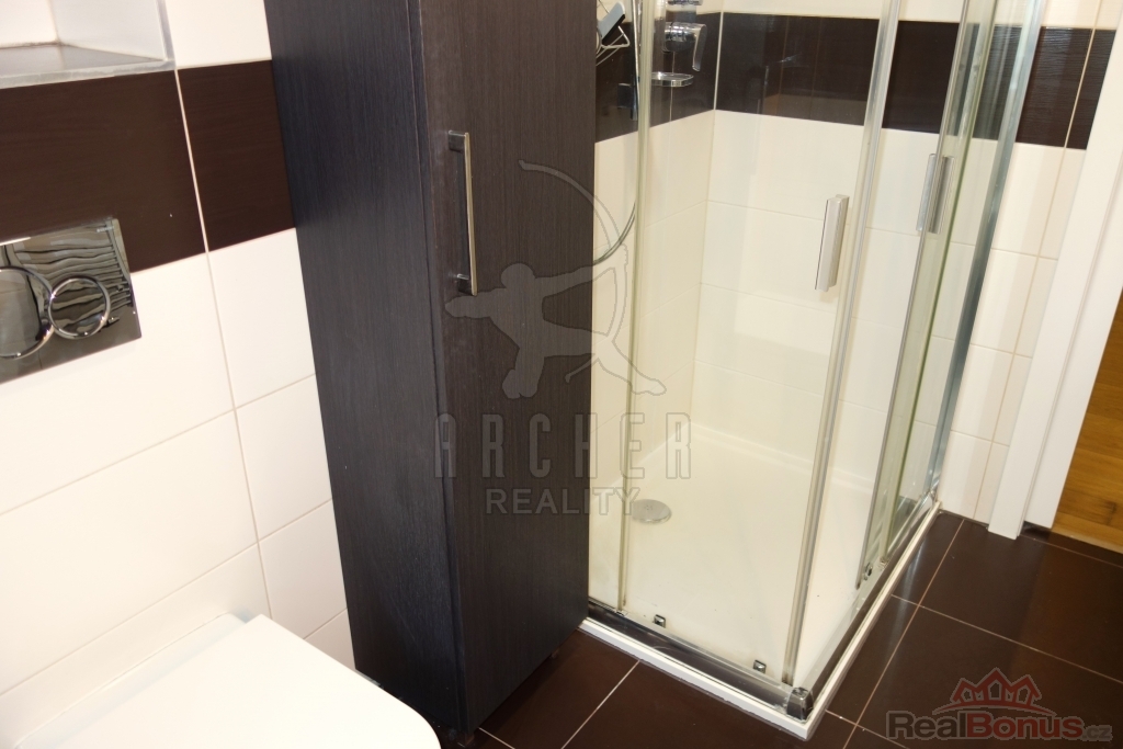 Nabízíme k prodeji byt 1+kk/T/S v OV, 68 m2, 32 m2 terasa, 2 m2 sklep, Praha 6 - Břevnov, ul. Nad Závěrkou. Moderní byt s výtahem a velkou terasou se nachází nad Dlabačovem, kousek od Pražského Hradu. Nabízí obývací pokoj s plně vybavenou kuchyňskou linkou, který navazuje na téměř stejně velkou terasu. Je vybaven nábytkem, vestavěnými skříněmi, postelí a policemi. Květiny a stůl nejsou k dispozici. Okna jsou nová plastová včetně francouzského a nechybí venkovní bezpečnostní rolety. Koupelna se sprchovým koutem, umyvadlem a toaletou má velké okno. Byt je vytápěn vlastním elektrickým kotlem. Vstupní dveře do předsíně jsou bezpečnostní a hned za nimi je k dispozici sklípek pod schodištěm.