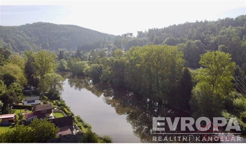 Slunné pozemky u řeky, které nejsou v záplavové zóně, s orientací na jih, v klidné oblasti s výhledem na Sázavu a okolní kopce.