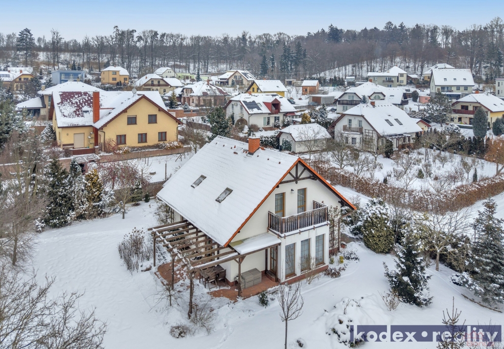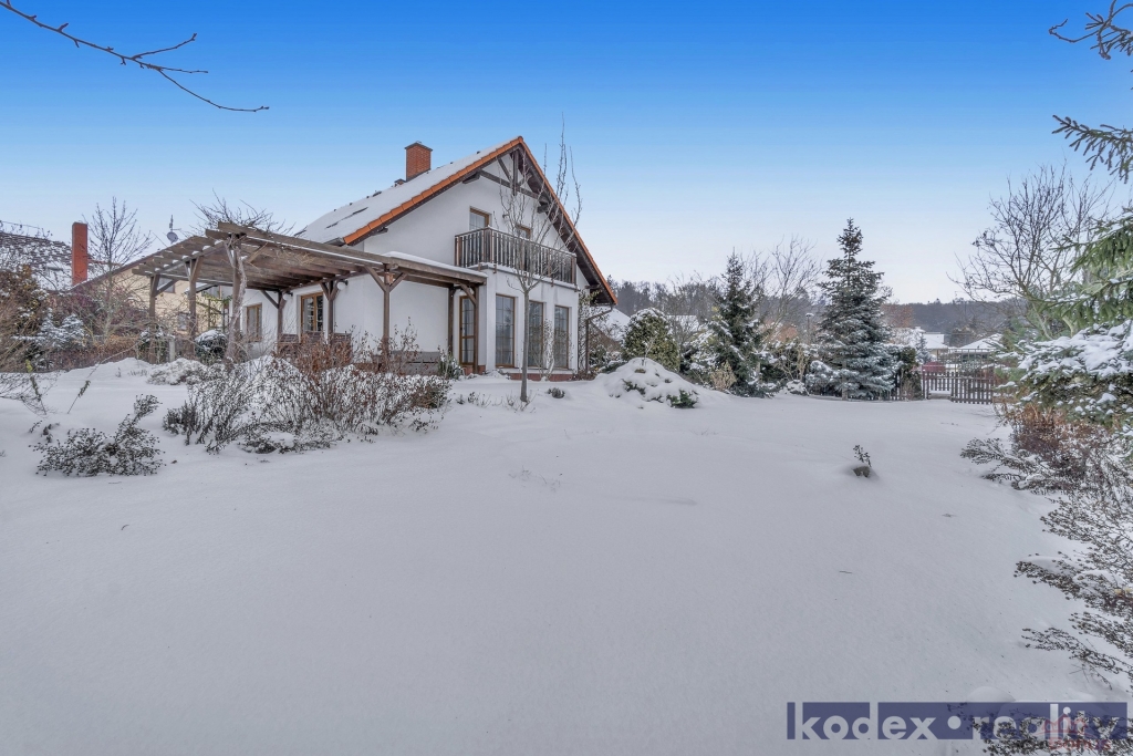 Nemovitost byla postavena ze železobetonové molitické konstrukce KEWO-LITH se zateplením. Vytápění objektu zajišťuje plynový kotel s rozvodem do radiátorů a podlahy a také krbová kamna v obývacím pokoji. Je rovněž instalován centrální vysavač. Podlahy v obou patrech jsou z pravých voskovaných parket. Pozemek je kompletně oplocen a v přední části je el. posuvná brána na dálkové ovládání, branka ke vchodu a druhá záložní brána pro zpřístupnění zahrady technikou. V zadním rohu pozemku je postaven zděný zahradní domek s krytým přístřeškem. Z obývacího pokoje je přístup na velkou terasu s pergolou. Před dvougaráží je parkovací plocha pro návštěvy.