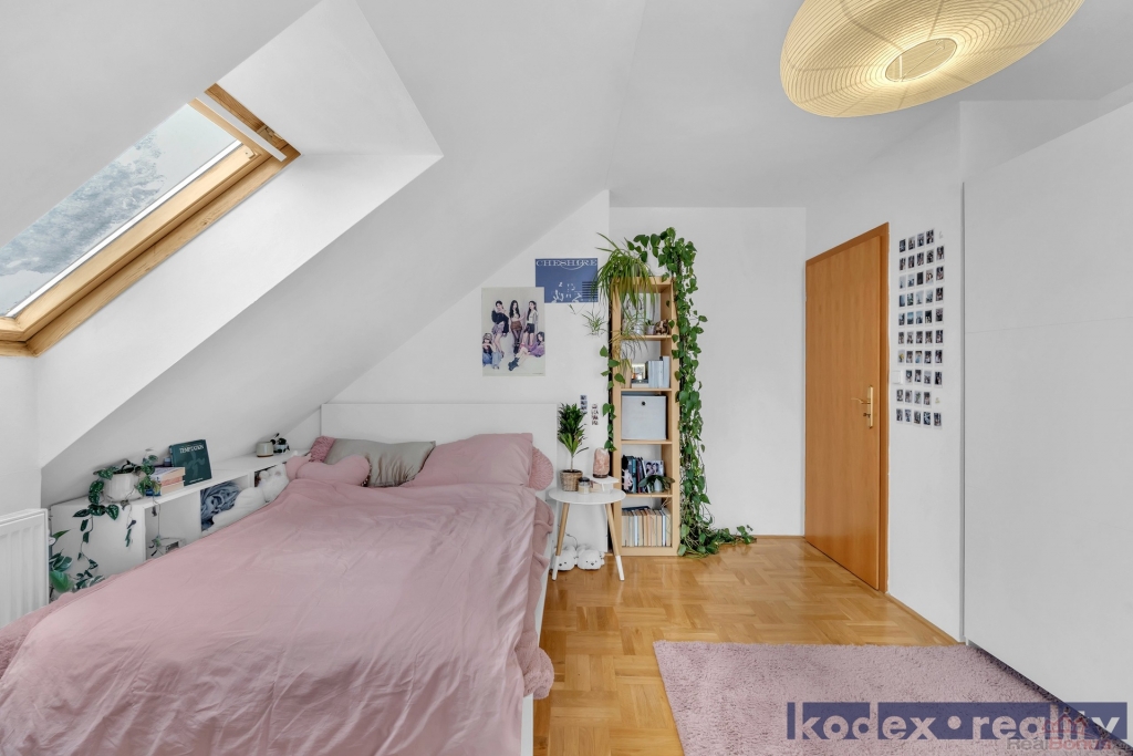 Půda - zateplený úložný prostor s přístupem na střechu ke komínu a anténě.