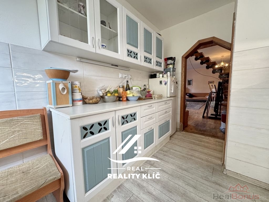 Byt působí vzdušně a útulně, nabízí dostatek úložných prostor a díky otevřenému dřevěnému schodišti má i příjemnou domácí atmosféru. K dispozici jsou také sklepní prostory.